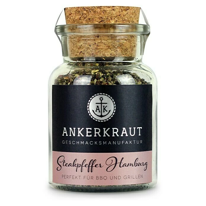 Die Ankerkraut Gewürzmischung Steakpfeffer Hamburg passt nicht nur zu Gegrilltem. Unser Steakpfeffer verpasst allen Gerichten die Sie mögen eine frisch-pfeffrige Note. Schärfetechnisch waren wir mal etwas moderater unterwegs, sodass unsere Hausmischung niemanden abschreckt und Sie ihn als echte Allzweckwaffe benutzen können. Zum Beispiel für Wraps zum Lunch, um Salaten den nötigen Pfiff zu geben, beim Raclette mit im Pfännchen oder zum Aufpeppen des nächsten Fondues. Klassisch sind Sie mit Marinaden fürs Fleisch oder zum Abschmecken von Soßen unterwegs. Dieser echte Allrounder bereichert wirklich jede Kombüse!
