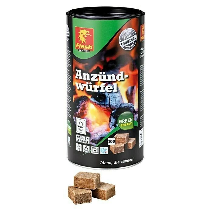 Mit den Anzündwürfeln von Flash heizen Sie richtig ein. Die aus Holz und Wachs bestehenden Anzündwürfel eignen sich zum sicheren und geruchsneutralen Anzünden von Grill, Ofen und Kamin. Die Grillanzünder bestehen zu 100 % aus nachwachsenden Rohstoffen.