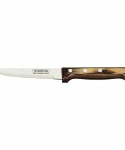 Das Tramontina Steakbesteck-Set Gaucho ist ein 2-teiliges Besteck-Set aus rostfreiem Edelstahl AISI 420 (entspricht DIN 1.4028) und Echtholz. Die harte Messerklinge hat eine lange Schnitthaltigkeit. Sowohl die Gabel als auch das Messer ist spülmaschinengeeignet. Das Holz der Griffe ist aufgrund der speziellen Herstellung besonders widerstandsfähig und stoßfest. Bei der Herstellung werden mehrere Schichten Kiefernholz mit Harz imprägniert, zusammengepresst, in Form geschnitten und schließlich poliert. Das langlebige Besteckset wird in Brasilien gefertigt. Das Messer besitzt eine Gesamtlänge von 24 cm, die Gabel von 21 cm.